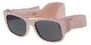 Børne Solbrille lys lyserød gummibelagt med bred nakke rem sorte glas